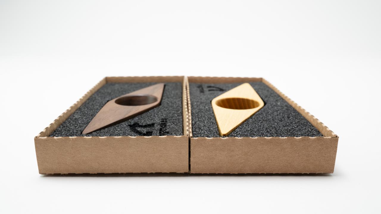 Holder oryginalnie i efektownie zapakowany w kraftowym pudełku z wytłoczoną pod niego pianką.