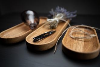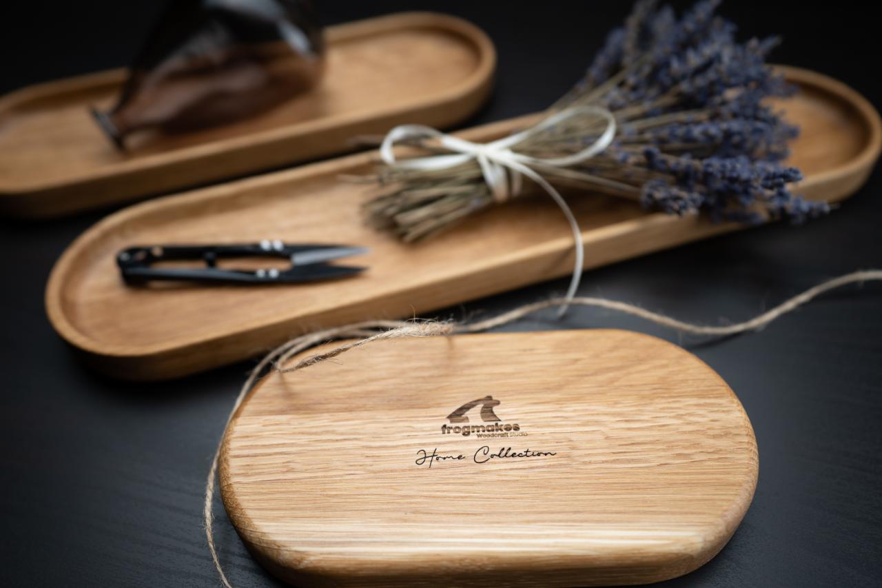Dębowe tace Frogmakes to połączenie naturalnego materiału z dopracowanym detalem.
