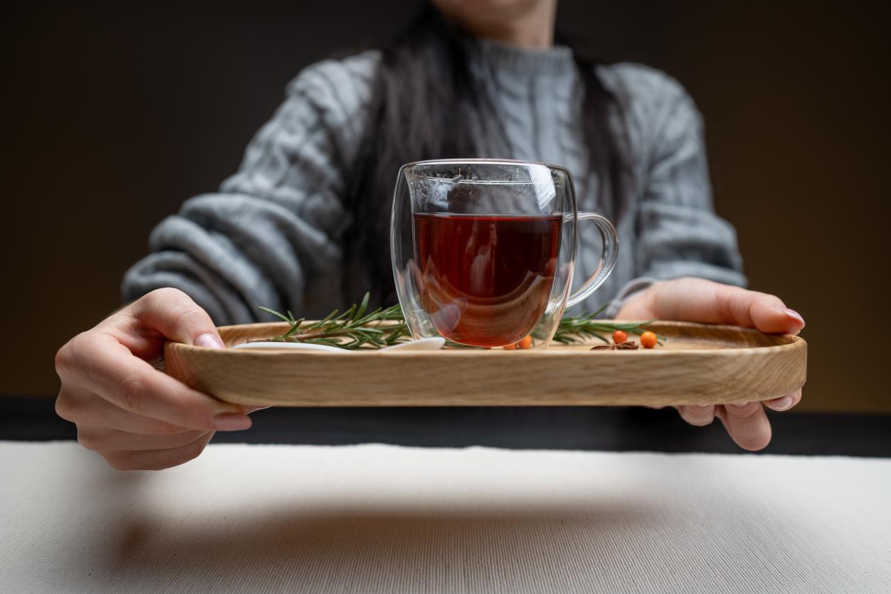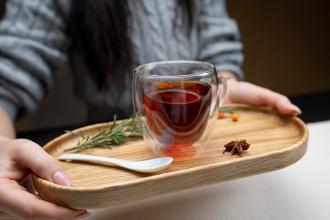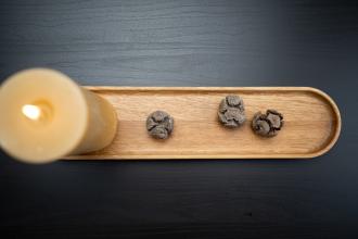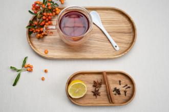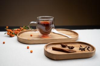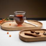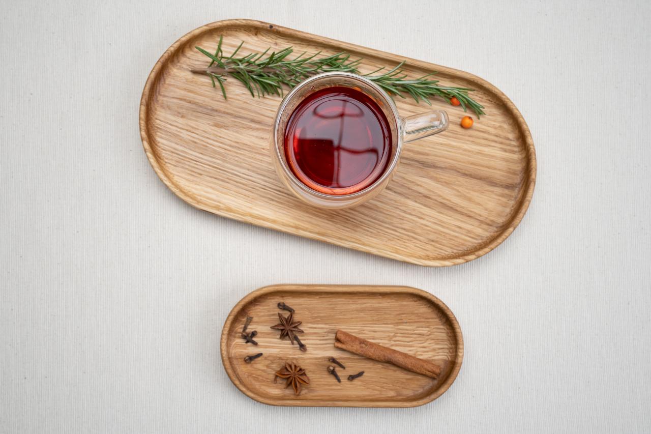 Powierzchnia tacy jest zabezpieczona naturalnym olejem, który chroni drewno przed wilgocią i zabrudzeniami.