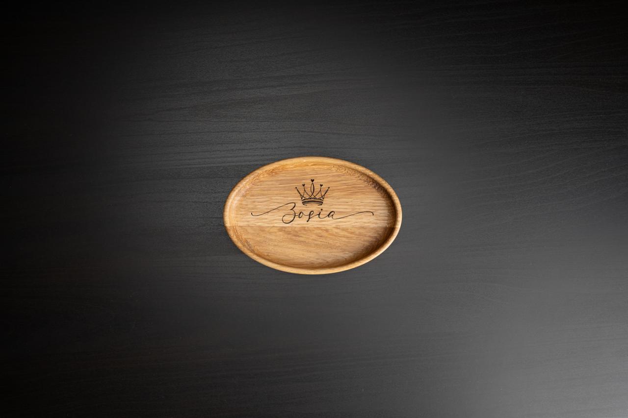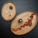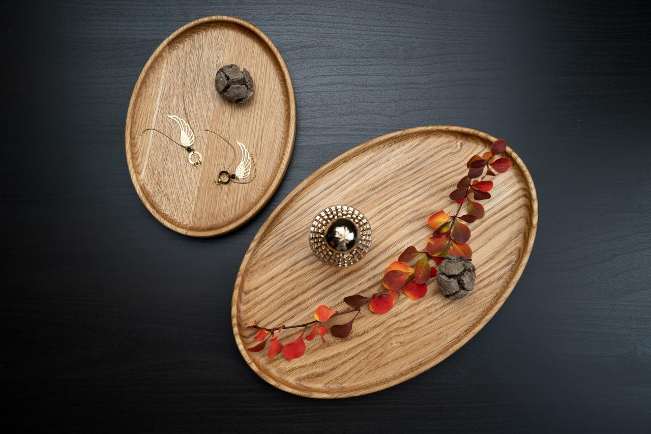 Dębowe tace Frogmakes w formie elipsy to połączenie prostoty i precyzji wykonania.
