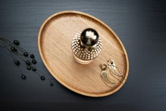 Eliptyczny kształt sprawia, że taca doskonale pasuje do wnętrz nowoczesnych i minimalistycznych.